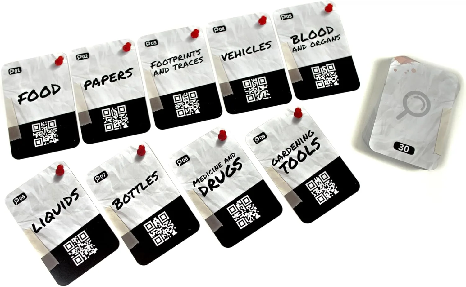 Using the Scan&Play technology, each component (locations, characters, items, etc.) has a unique QR code, which, depending on the scenario selected, will activate and trigger different clues and stories. That means players will be able to get new stories way after the game is released simply by downloading the app's updates, without any shipping of new physical components involved.