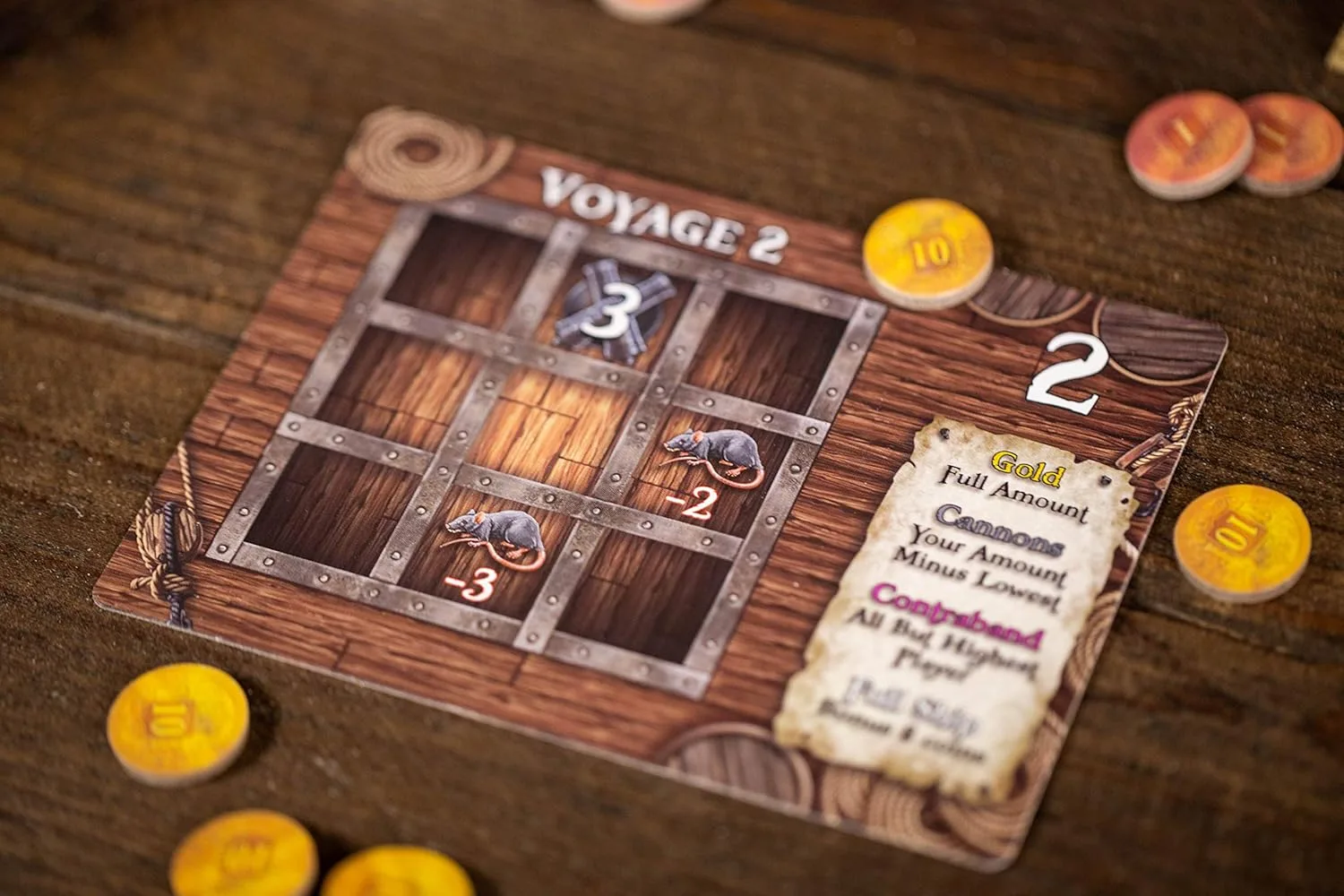 In the late 17th Century, mighty ships sailed the seas and brought all manner of goods back to port. As a savvy captain, you must skillfully utilize your crew to fill your ship's hold with the best combination of treasure, cannons, and (ahem) other items to earn gold. In the end, the player who amasses the biggest bounty will be declared the greatest smuggler...uh, SEA CAPTAIN...of all time!