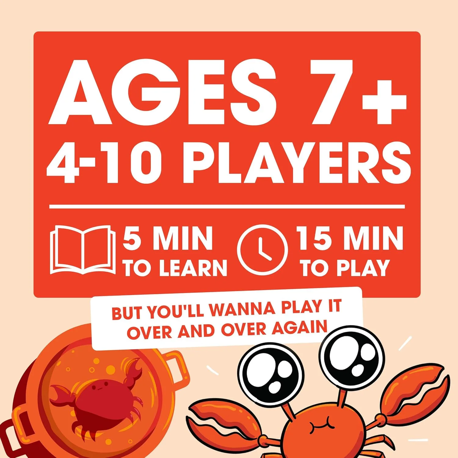 Players collect 4 of the same crabs and secretly signal to each other to get points.