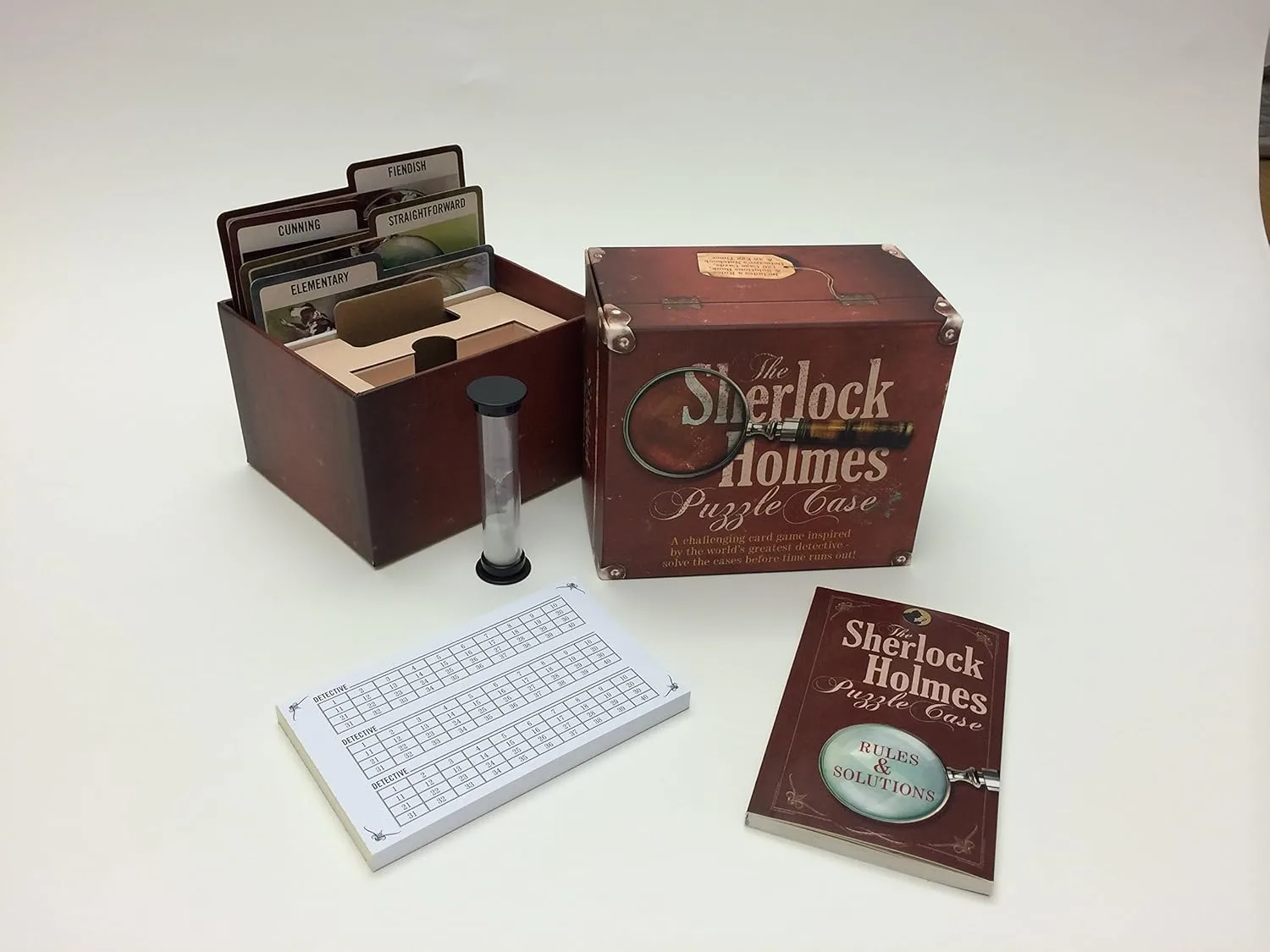 More difficult questions are worth more points and each player has a single Moriarty card and a Sherlock card which can each be used once per game to score in additional ways. A Moriarty card is used at the start of another players turn as a bet that they will not answer the question correctly (or in time). If the bet is correct, the Moriarty player earns the points for the question. A Sherlock card can be used on your own turn to make the question worth double the points. However, it must be played before reading the question!