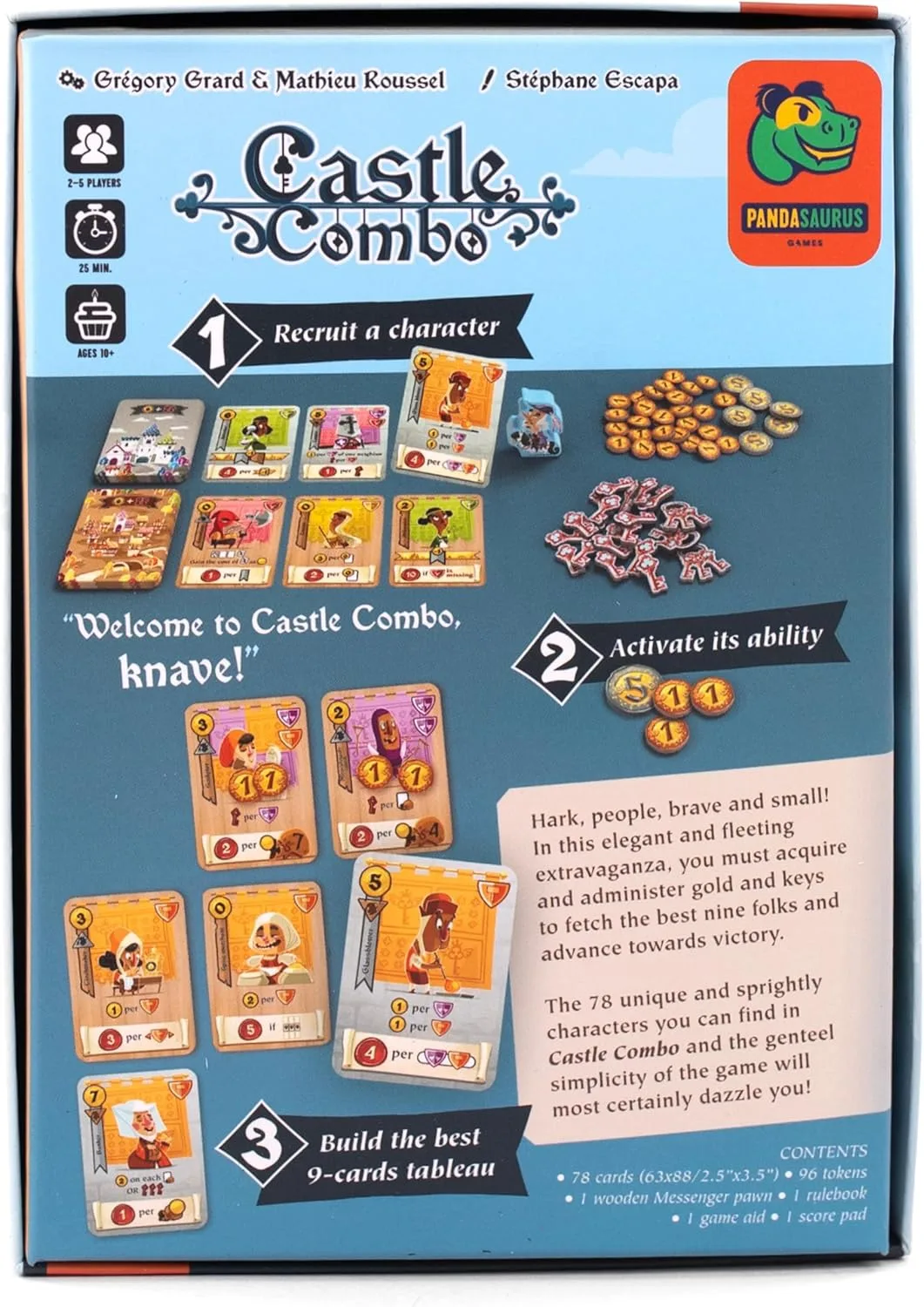 Each turn, you add a character to your tableau — a seemingly straightforward action that packs a punch regarding strategic decisions. You'll need to carefully manage your Keys to influence the Messenger pawn at critical moments, as it controls which characters are available for recruitment from two different areas – peasants and nobles.