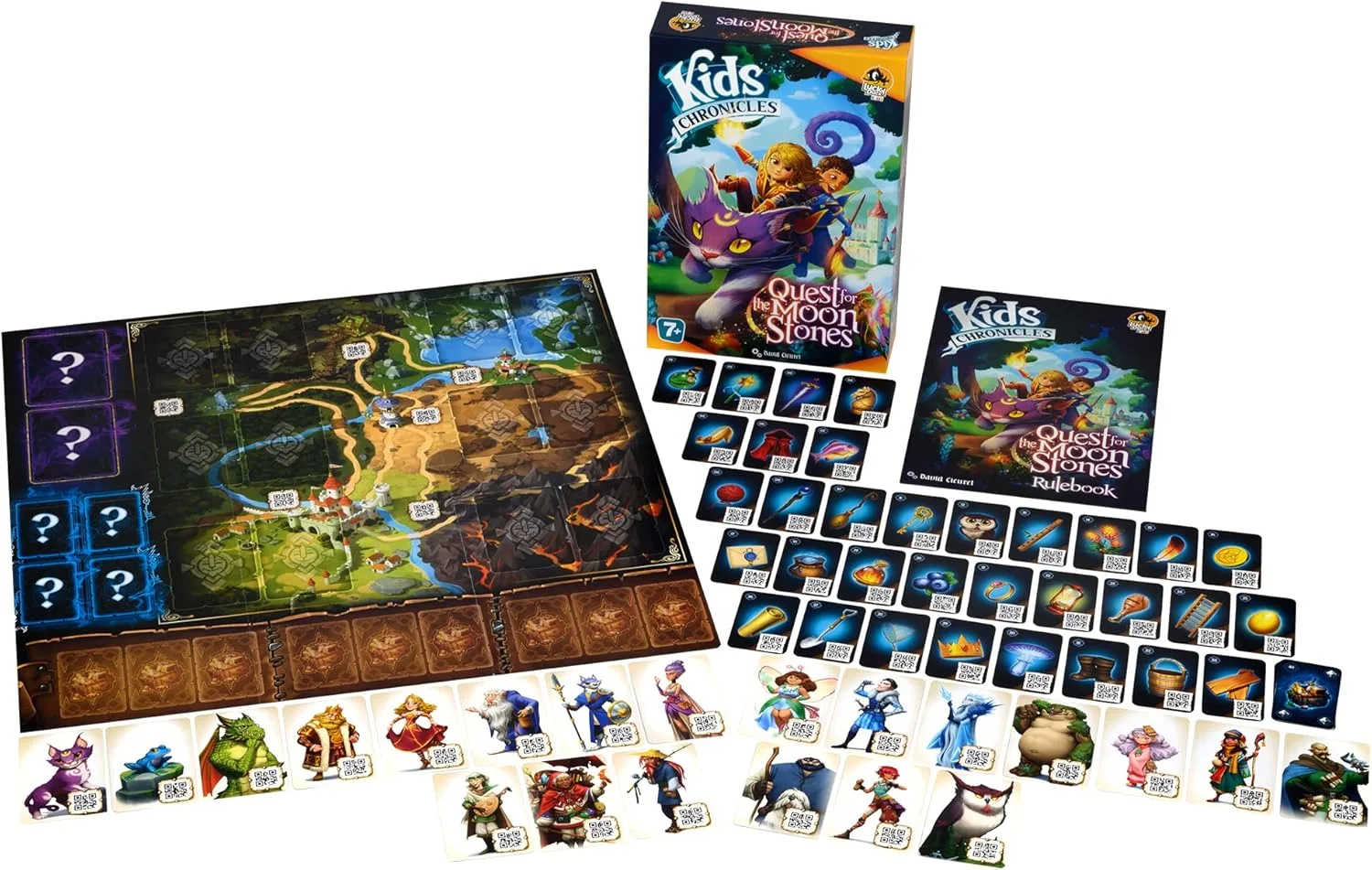 Kids Chronicles: Quest for the Moon Stones is a co-operative family game of adventure and mystery investigation that mixes a board game and app.