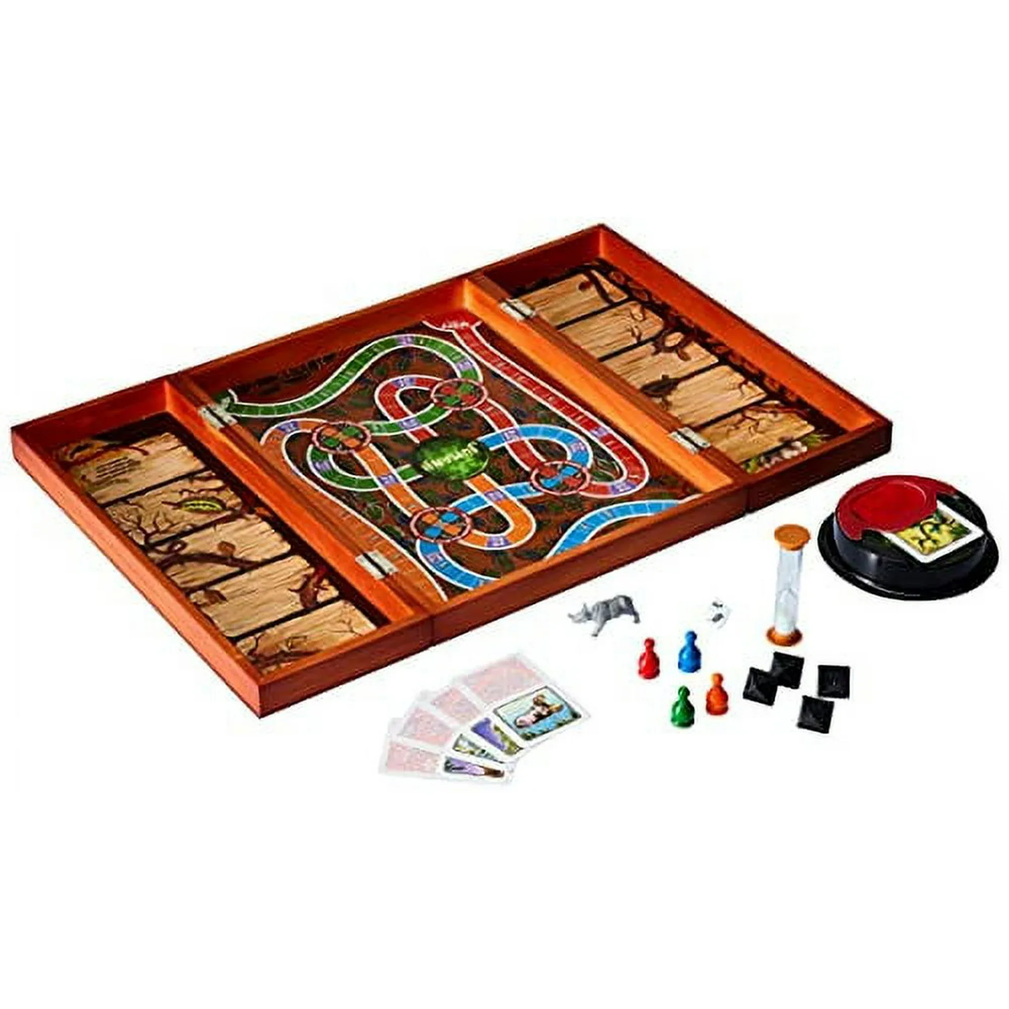 Choose your pawn and set out on a deadly journey. Decode rhyming card messages that could spell disaster! Roll 8-sided dice together to rescue a fellow player in danger! Fail to escape, and the jungle could swallow you whole! The only way out is to finish the game. Only then will the terrors of the jungle disappear…