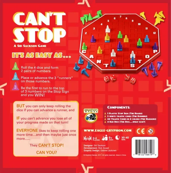 Can't Stop is one of the best tabletop games that brings excitement and thrill to game nights! We invite you to dive into this fast-paced push-your-luck dice game, where players race to reach the finish line by tactically rolling dice. The balance of strategy and chance keeps everyone engaged, making it one of the best table games for both new and experienced players. Can't Stop is perfect for family gatherings or casual get-togethers with friends. Experience laughter, tension, and memorable moments by adding this dynamic game to your collection! They can’t stop! Can you?