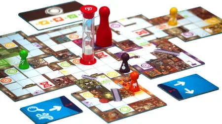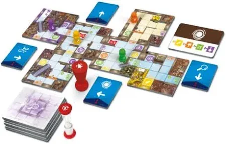 After being stripped of all their possessions, a mage, a warrior, an elf, and a dwarf are forced to go rob the local Magic Maze shopping mall for all the equipment necessary for their next adventure. They agree to map out the labyrinth in its entirety first, then find each individual’s favorite store, and then locate the exit. In order to evade the surveillance of the guards who eyed their arrival suspiciously, all four will pull off their heists simultaneously, then dash to the exit. That's the plan anyway…but can they pull it off?