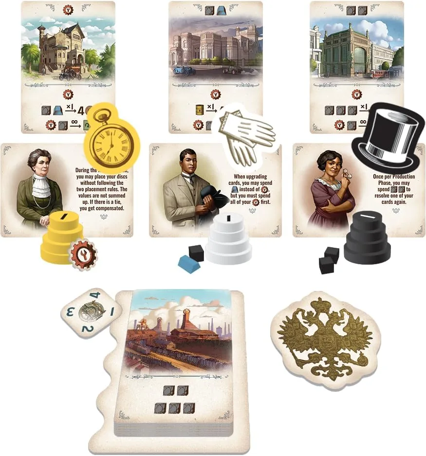 Furnace is an engine-building Eurogame in which players take on the roles of 19th-century capitalists building their industrial corporations and aspiring to make as much money as they can by purchasing companies, extracting resources, and processing them in the best combinations possible.