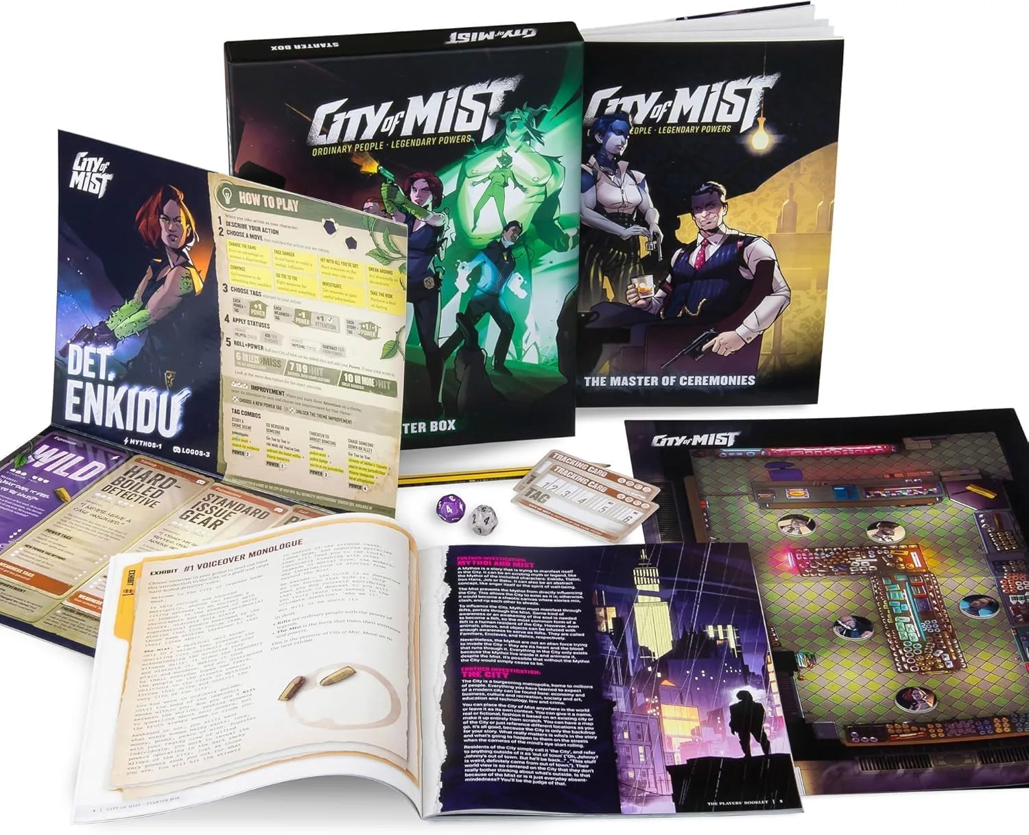 We’ve packed this starter set with everything you need to dive right into the world of City of Mist—streamlined rulebooks, pre-made characters, and an action-packed adventure. It’s perfect for anyone new to RPGs or looking for an easy way to jump into the game.