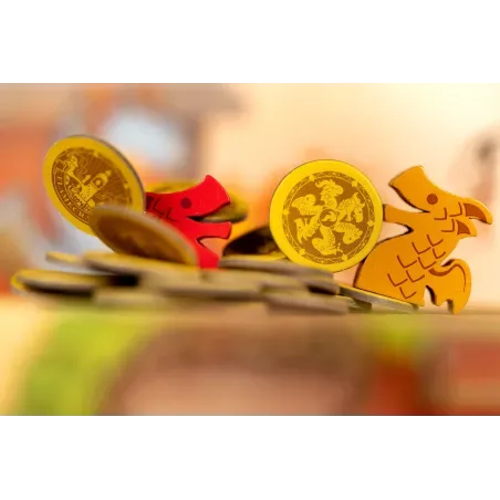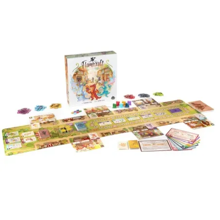In Flamecraft, 1-5 players take on the role of Flamekeepers, gathering items, placing dragons and casting enchantments to enhance the shops of the town. Dragons are specialized (bread, meat, iron, crystal, plant and potion) and the Flamekeepers know which shops are the best home for each. Visit a shop to gain items and a favor from one of the dragons there. Gathered items can be used to enchant a shop, gaining reputation and the favors of all the dragons in the shop. If you are fortunate enough to attract fancy dragons then you will have opportunities to secure even more reputation.