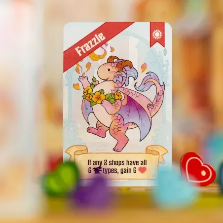 Artisan dragons, the smaller and magically talented versions of their larger (and destructive) cousins, are sought by shopkeepers so that they may delight customers with their flamecraft. You are a Flamekeeper, skilled in the art of conversing with dragons, placing them in their ideal home and using enchantments to entice them to produce wondrous things. Your reputation will grow as you aid the dragons and shopkeepers, and the Flamekeeper with the most reputation will be known as the Master of Flamecraft.