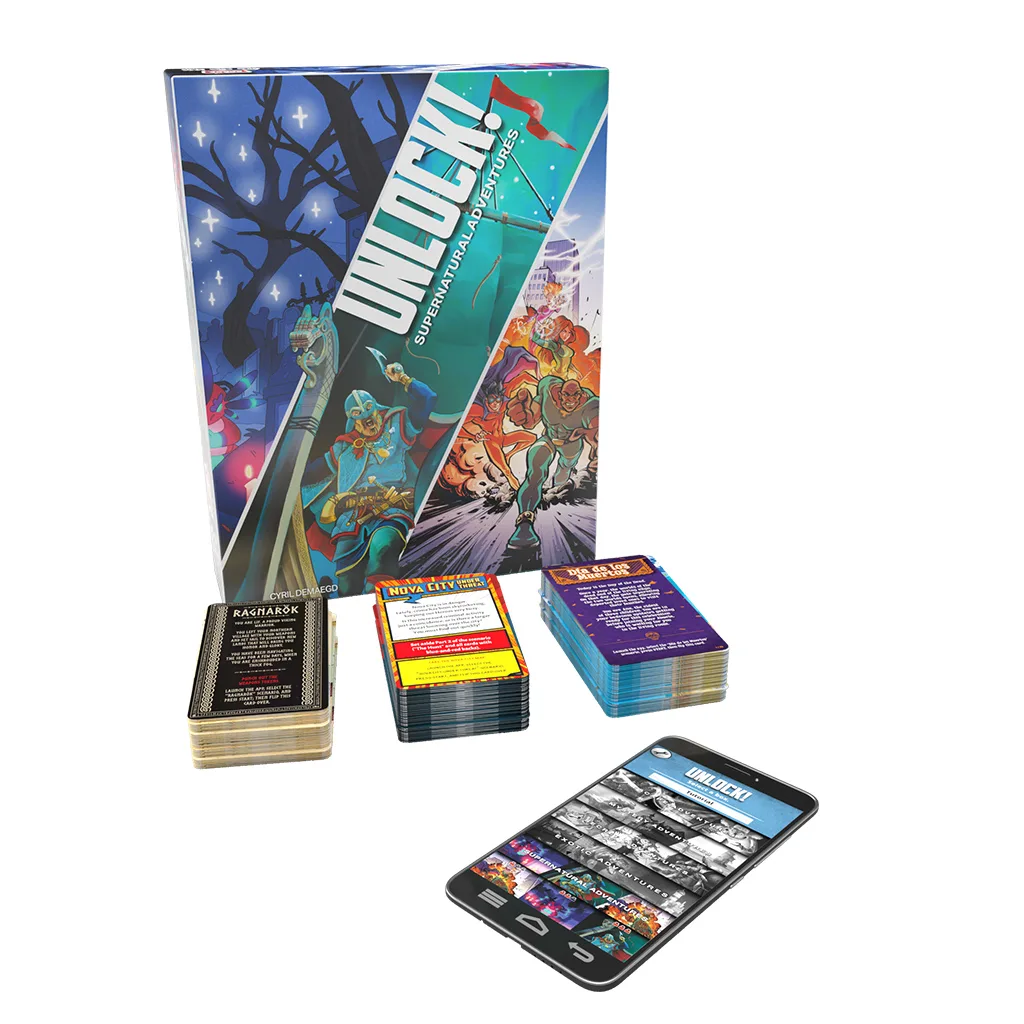 Play as superheroes, celebrate Dia de Los Muertos or join Viking warriors in these three new epic experiences. For its new edition, Unlock! has tapped into the zeitgeist to immerse players in supernatural atmospheres. A colorful mix that will satisfy millions of fans and appeal to the general public! - THRILLING ADVENTURES: Dive into three unique supernatural settings with UNLOCK! Supernatural Adventures—battle super-villains as a superhero, celebrate Dia de Los Muertos, or sail with Viking warriors. - RICH CULTURAL TALES: Experience the vibrant Festival of the Dead, where the living and the dead reunite. Prepare for an emotional encounter with spirits from beyond, including a visit from your beloved Abuela. - HEROIC JOURNEYS: Assume the role of Lif, a daring Viking warrior, and navigate through mysterious foggy seas to discover new lands and achieve legendary fame. - CHALLENGING ESCAPE GAME: Each adventure is designed to test your puzzle-solving skills and decision-making in a race against time. Can you resolve the crises and succeed before the clock runs out? - PERFECT FOR GAME NIGHTS: Ideal for 1 to 6 players, UNLOCK! Supernatural Adventures provides an immersive experience that appeals to both dedicated fans of escape games and newcomers looking for an engaging challenge.