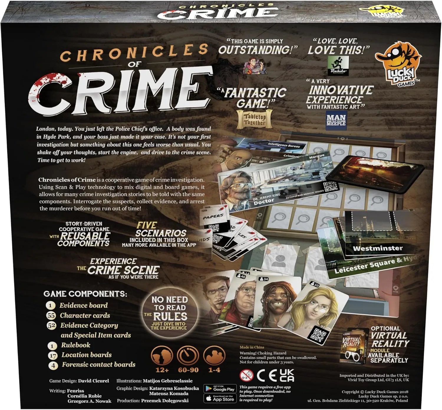 Chronicles of Crime is a cooperative game of crime investigation, mixing an app, a board game and a touch of Virtual Reality.