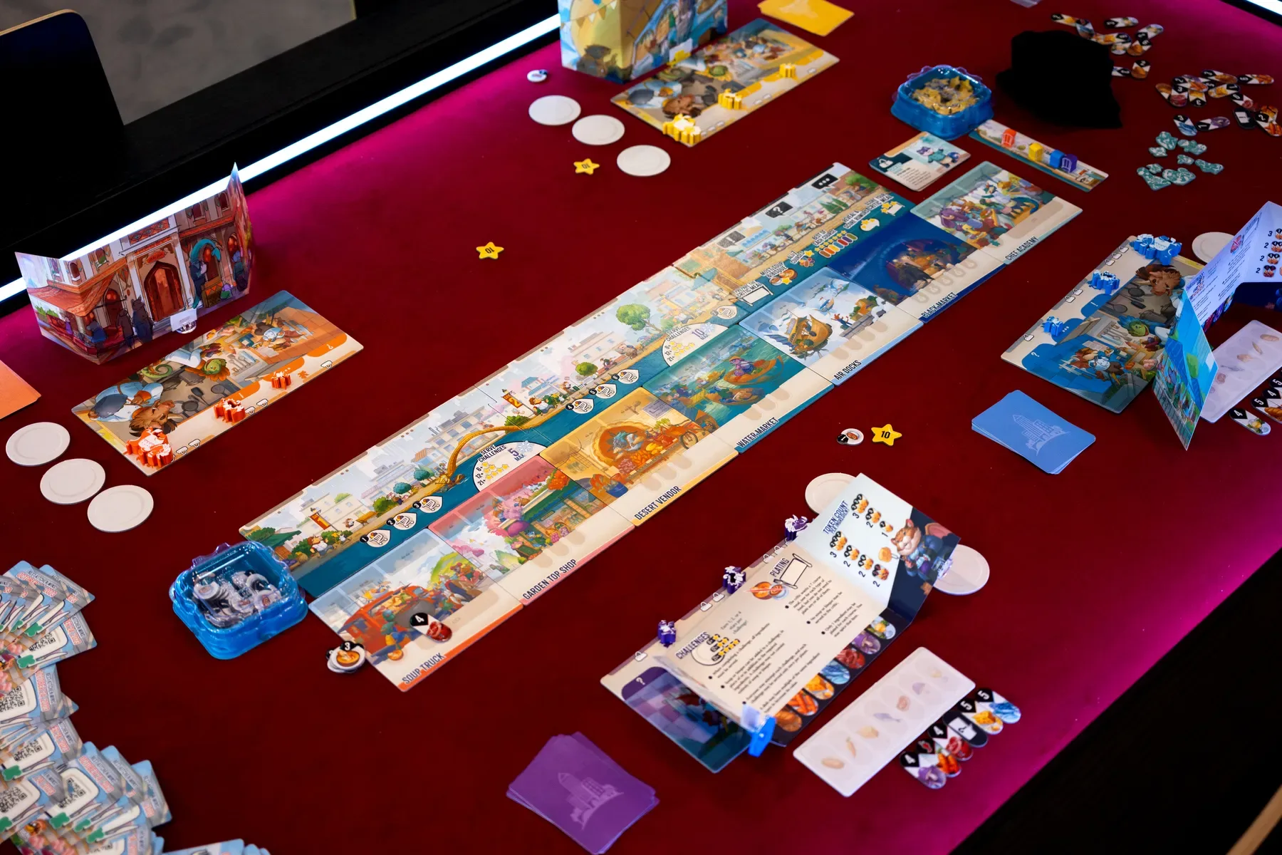 Each round new random ingredients are placed in various locations throughout the city. Players simultaneously and secretly plan which locations to send their three chefs to, hoping to collect the best ingredients. Some chefs are fast, but can only gather one item, while others can carry three items, but arrive late. Rumors are also available at locations and provide guidance on what the critic desires.