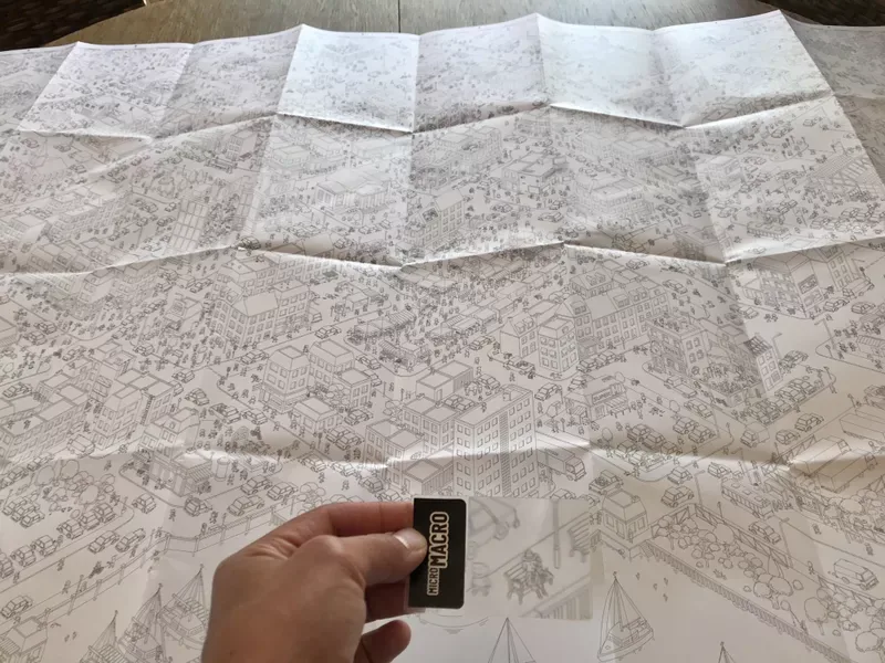 MicroMacro: Crime City includes 16 cases for you to solve. Each case includes a number of cards that ask you to find something on the map or uncover where someone has gone or otherwise reveal information relevant to a case. The city map serves as a map in time as well as space, so you'll typically find people in multiple locations throughout the streets and buildings, and you need to piece together what happened, whether by going through the case card by card or by reading only the starting card in the case and trying to figure out everything that happened for yourself. Will you be able to answer all questions about the case without fail?