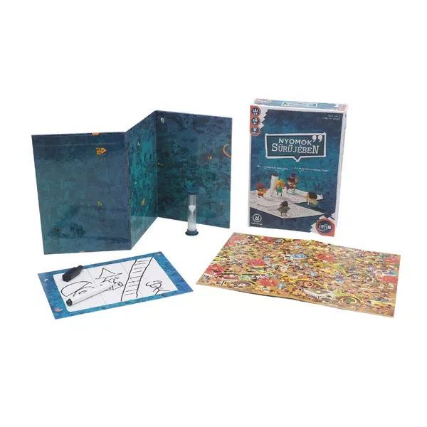 In Last Message, the victim of the crime gives clues over four rounds to help the detectives determine the identity of the criminal. To give clues in a round, the victim has 30 seconds in which to draw and write in a 3x3 grid — but before handing over these clues, the criminal can erase part of these drawings.