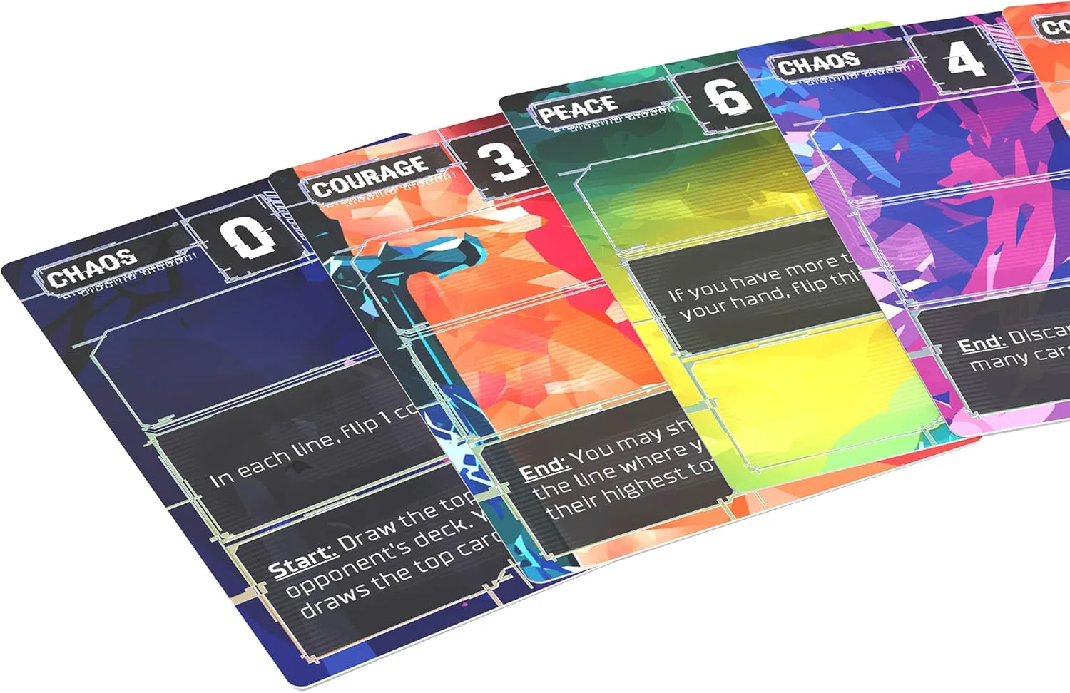 In the card game Compile, you are competing artificial intelligences trying to understand the world around you. Two players select three Protocols each to test. Concepts ranging from Chaos to Mirror are pitted against each other to reach ultimate understanding. Play cards into your Protocols' command lines to breach the threshold and defeat your opponent to Compile. First to Compile all three Protocols grasps those concepts to win the game.