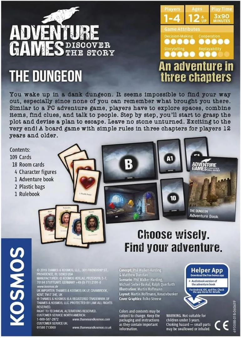 In The Dungeon, the players awaken in a prison cell in the middle ages with no memory of how they got there. What happened? What strange things are taking place in this dungeon? And most importantly, how can they get out? Over three chapters, players will jointly explore rooms, combine objects, and perhaps even encounter creatures that lurk in the dark rooms of the old castle...