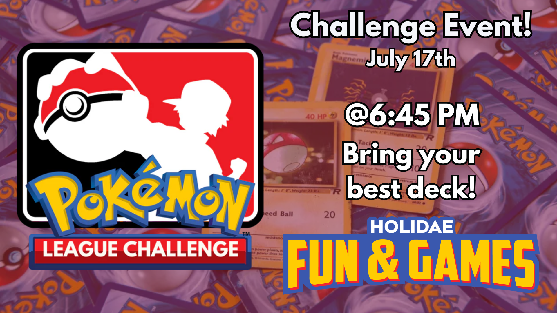 Ready to test your skills and earn Championship Points? Join us for our Pokémon League Challenge, where Trainers face off in a Best-of-One Swiss tournament using Standard Legal decks. A deck list is required, so come prepared to compete! This is a great opportunity to gain tournament experience, challenge local rivals, and climb the competitive ladder. Bring your best deck, your Player ID, and your game face—it's time to battle!